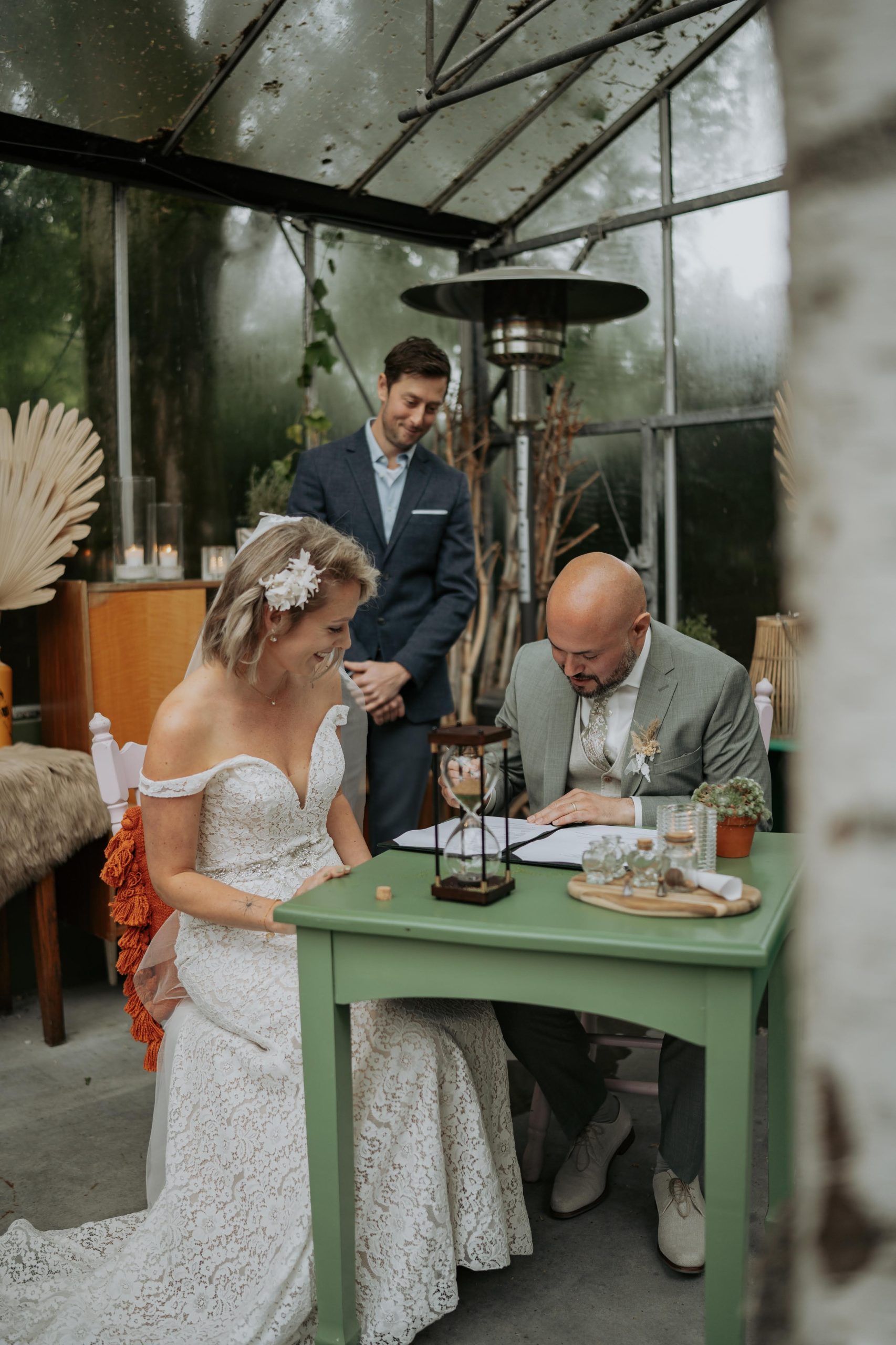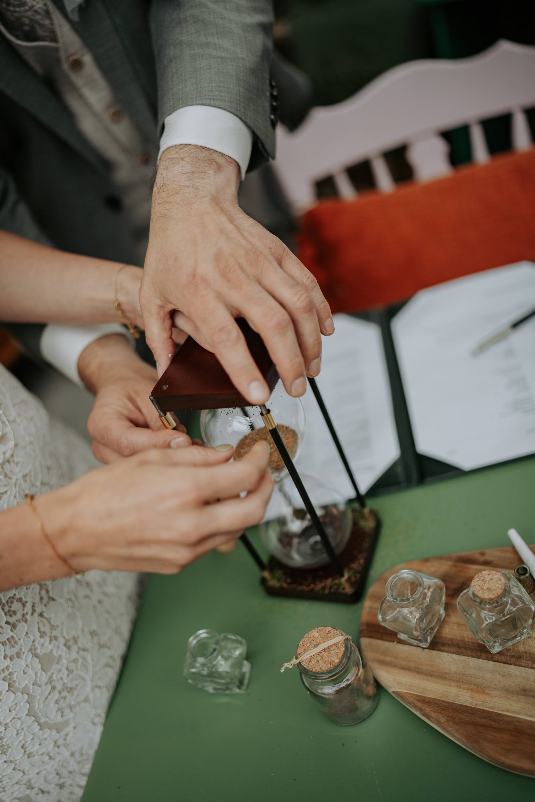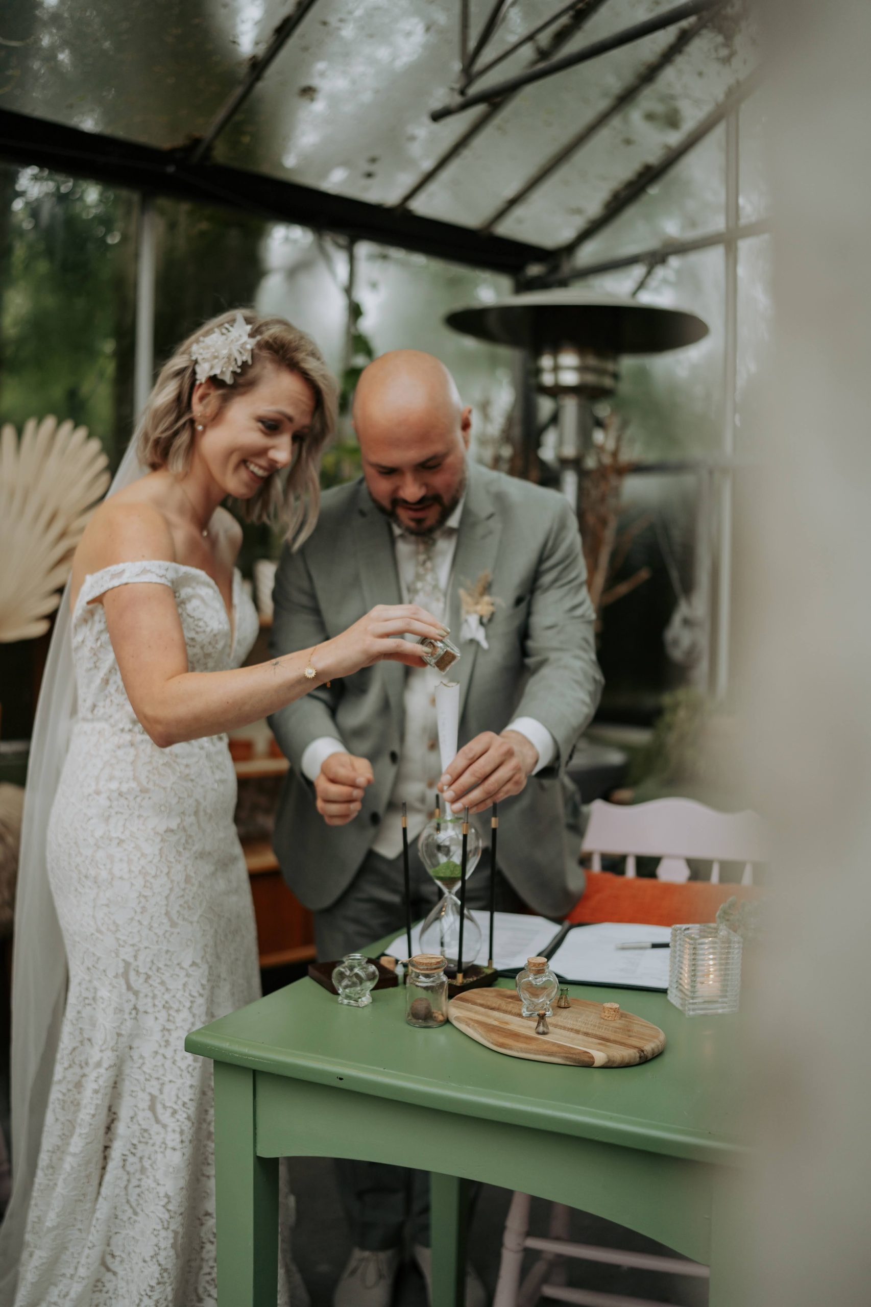 Ook nieuwe en onverwachte elementen zag hij niet als obstakels, maar juist als een mooie uitdaging, wat de ceremonie nog unieker maakte. Alles verliep natuurlijk en met een ontspannen flow, waardoor wij ons volledig konden overgeven aan het moment. We hebben enorm genoten en zouden zonder twijfel opnieuw voor Jehan kiezen. Dankjewel voor je warmte, betrokkenheid en professionaliteit!
